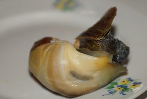 не знаю, как у Вас так получалось(… Я не все фото выставила в этой теме, у меня был улов 288 штук!, процесс проходил быстро, муж кипятил и вынимал рапану из ракушки, я сразу удаляла внутренности и запаха безумного как-то не заметила. Даже фотать, как видите успевала :) А по вкусу рапана напоминает кальмара и такая плотненькая, как грибы белые. Очень вкусно. Надо бы выставить темку, я жульен еще готовила недавно.