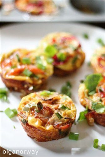 Эти мини-бутерброды являются отличным способом начать свой день с белком, а на вкус они идентичны настоящим любимым омлета.Самое замечательное свойство этого блюда, что оно не теряет своих вкусовых качеств очень продолжителльное время. Вы можете приготовить в воскресенье 6 омлетиков в форме для кексов и затем разогревать их каждое утро в микроволновке. Вы не поверите, но после разогрева они имеют прекрасный свежий вкус! К тому же мжно варьировать состав начинок по желанию: вегитарианские, с овощами, с беконом, ветчиной сыром… Одним словом: большое поле для творчества!