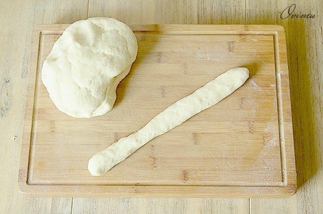 Отвариваем картофель, продавливаем его через пресс или протрем через терку. Добавим яйцо, посолим и подсыпая муки замесим тесто.