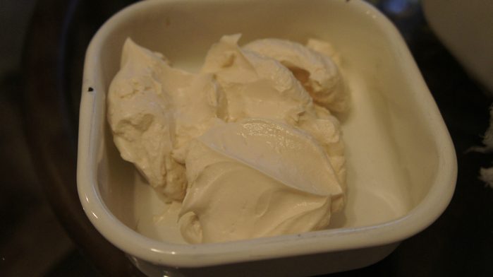 Вечером положил, утром получил готовую массу. Думаю, что и со сметанкой будет нормальный вариант. Небольшой совет, если хотите, чтобы, действительно на творожный крем-сыр было похоже, делайте только из кефира. Ряженка и варенец дают привкус не привычный для такого продукта. А вот кефир — самое то.