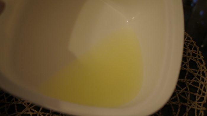 Я слила отделившуюся сыворотку, получилось побольше полулитра жидкости, и использовала ее в тесте для пирогов. Думаю, что на ней получатся наипышнейшие оладьи, обязательно попробую напечь.