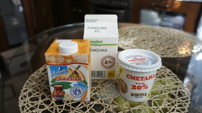Ингридиенты: литр ряженки, 250 грамм сметаны и 0,5 ч.л. соли.