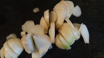 3. Теперь необходимо натереть на крупной терке сыр и морковь. Лук — очистить и нарезать полукольцами. Лук и морковь можно обжарить на сковородке на растительном масле (если у Вас мало времени, то можете этого не делать — я тоже не стала