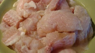 1. Моем, обсушиваем (бумажным полотенцем) и нарезаем на порционные куски наше филе рыбы (я брала филе пангасиуса):