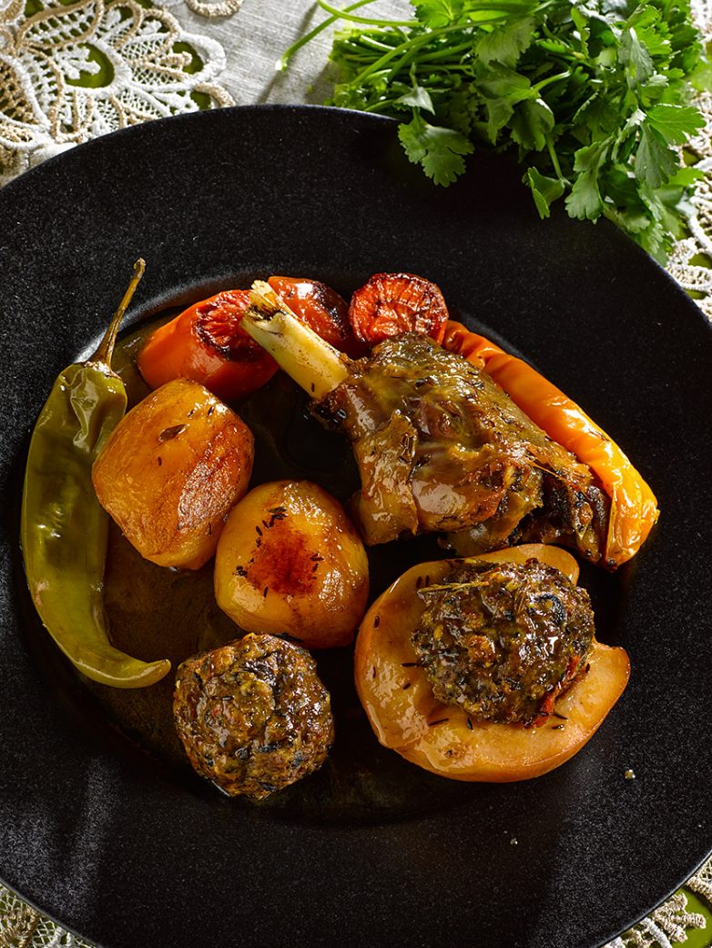Айва начиненная фаршем из одних только фисташек и изюма — изумительна. Фисташки и изюм хорошо сочетаются с мясом во многих восточных блюдах. Так почему же мясо, фисташки, изюм и айва не будут сочетаться вместе?