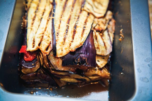 Повторите процедуру еще несколько раз. Последним слоем должны стать баклажаны.
