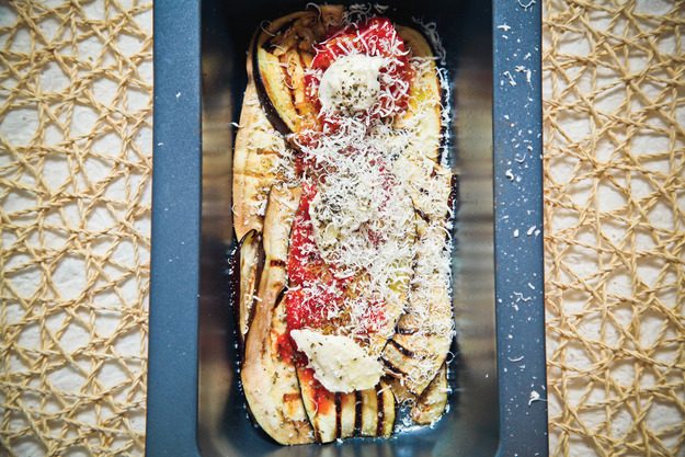 А что если заменить привычные листы лазаньи на баклажан, а соус бешамель — на небольшое количество пармезана и моцареллы?