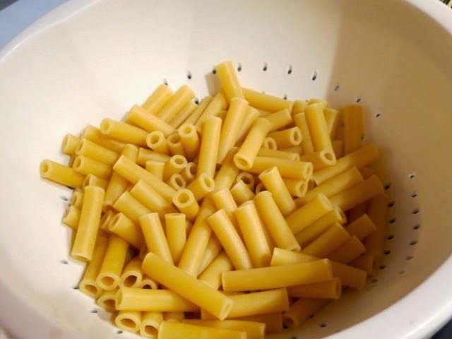 Пасту отвариваем в большом количестве хорошо подсоленной воды согласно инструкциям на упаковке. Откидываем пасту на дуршлаг.