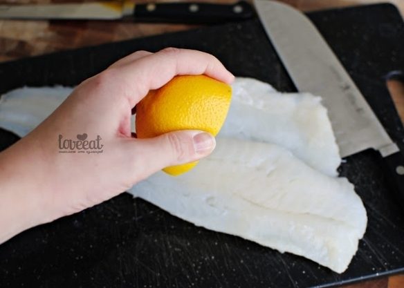 Побрызгайте рыбное филе соком половины лимона.