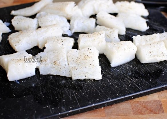 Посыпьте солью и черным перцем и нарежьте на кусочки.