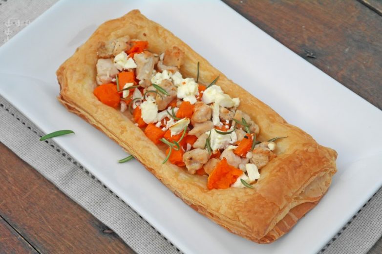 Когда нужно приготовить вкусный пирог, а времени нет, на выручку вполне может прийти этот рецепт. Сочетание слоеного рассыпчатого теста, яркой тыквы, нежного куриного мяса и мягкой феты здесь -идеальное.