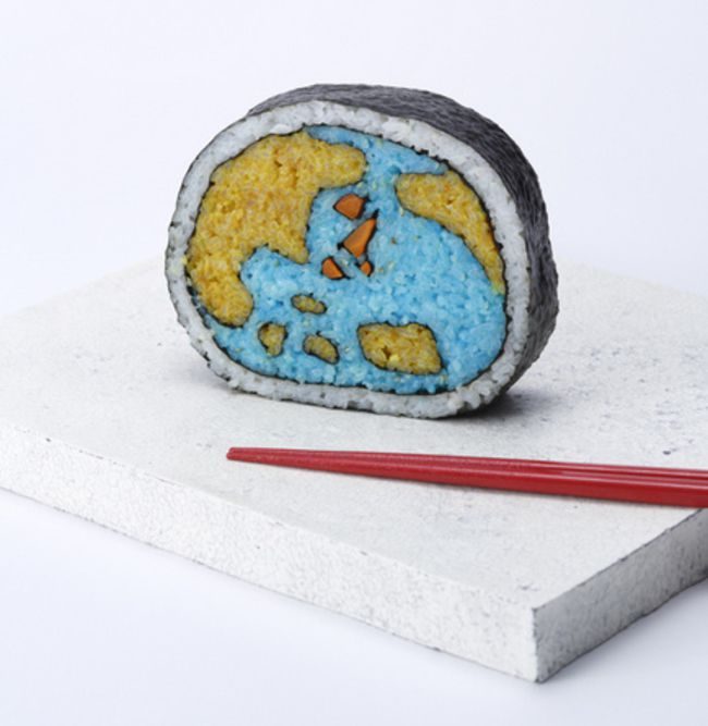 Японские шеф-повара создают настоящие картины, но не маслом по холсту, а из риса и продуктов. Сложность заключается в том, что при формировании роллов художник должен расположить разноцветные элементы начинки таким образом, чтобы на срезе получился задуманный портрет или пейзаж.