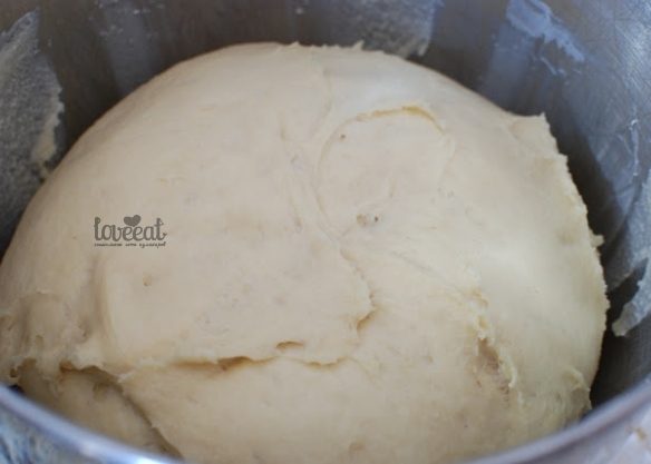 После 4-го стакана муки взбивайте еще 3-5 минут, после чего посмотрите, достаточно ли муки в тесте. Если тесто легко отходит от стенок посуды, то муки достаточно. В противном случае добавьте еще немного муки, но всего ее должно быть не больше пяти стаканов!