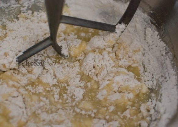 Далее добавляйте по одному стакану муки, каждый раз тщательно перемешивая на низкой скорости.