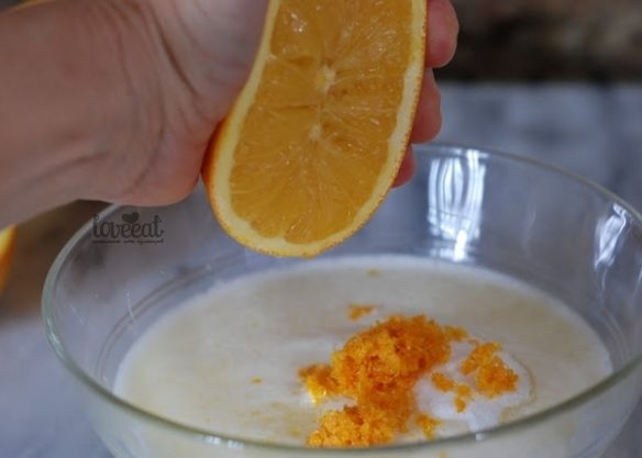 И приготовьте апельсиновую глазурь! Для этого вам понадобится сахар, топленое сливочное масло, цедра целого апепльсина и сок половины апельсина.