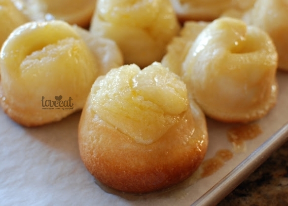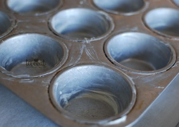 Поместите булочки в форму. Для того, чтобы случайно вытекшая глазурь не испортила вам духовку, поместите форму для выпечки в выстеленный пергаментной бумагой противень. Так спокойнее :)