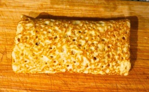 Формируем блины. На блин кладем порцию начинки ближе к одному краю.