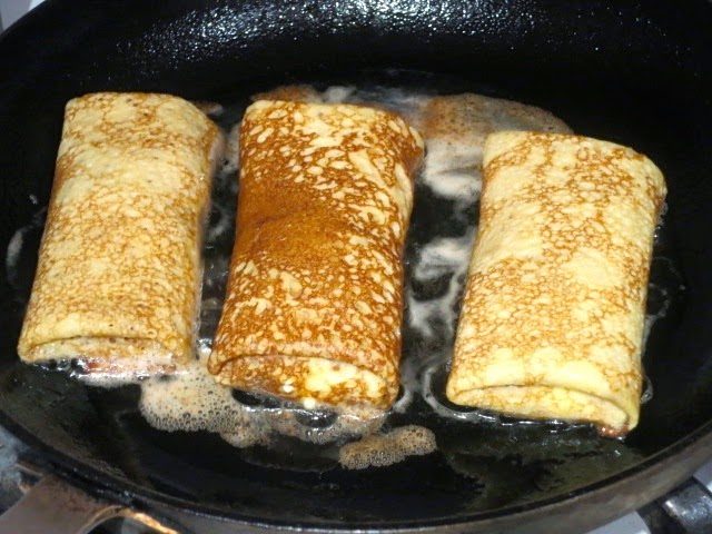 Перед подачей разогреваем на сковороде оба вида масла. На среднем огне обжариваем блины примерно по две минуты на каждой стороне, до золотистого цвета.
