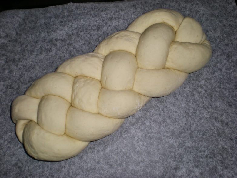 Концы плетенки подвернуть. Поставить в теплом месте на расстойку на 30 минут. Сверху прикрыть пленкой.
