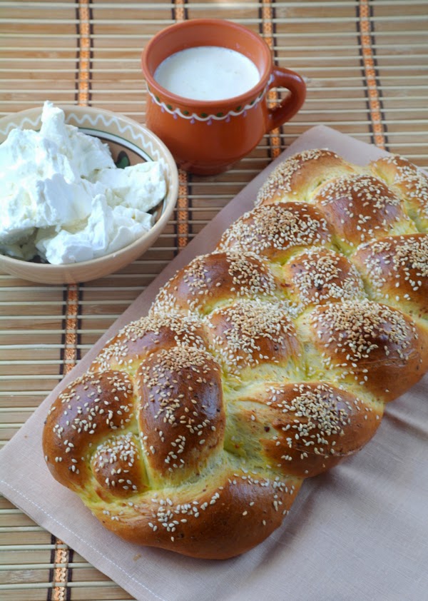 Через 30 минут плетенку смазать взбитым яйцом и присыпать кунжутом или маком.
