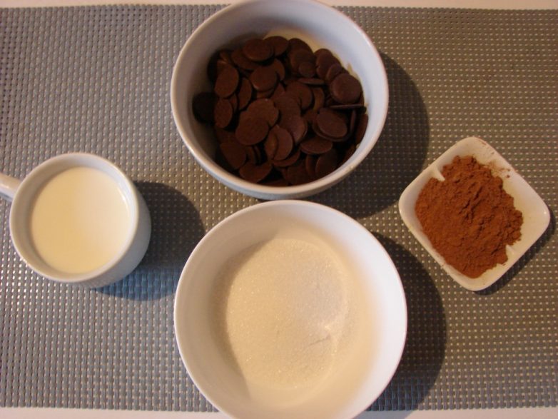 — Вылить часть сливок в кастрюльку и нагреть. Всыпать туда какао и сахар. Продолжать нагревать до полного растворения, постоянно помешивая. Затем добавить шоколад и довести смесь до кипения. Главное, постоянно помешивать.
