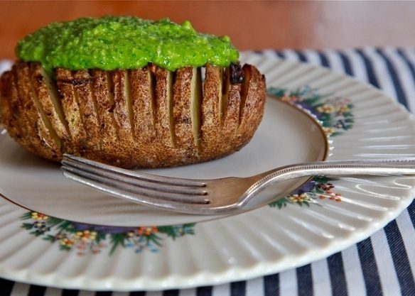 Картофель-хассельбек назван так в честь ресторана в Стогкольме, где его впервые подали в таком виде. Он прекрасно сочетается с совсем не шведским соусом песто. Необычная и вкусная закуска на все случаи жизни!
