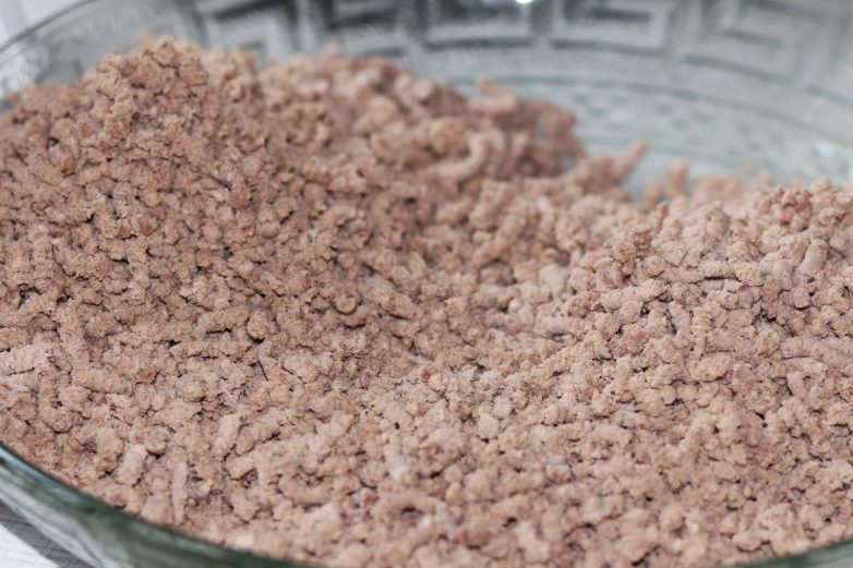 2. Прокрутить мясо на мясорубке со средней решеткой.