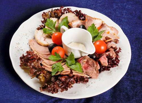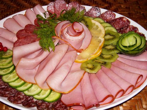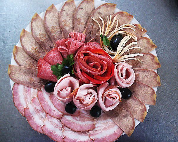 Никаких правил и ограничений в приготовлении и украшении мясного ассорти (мясной тарелки) нет.