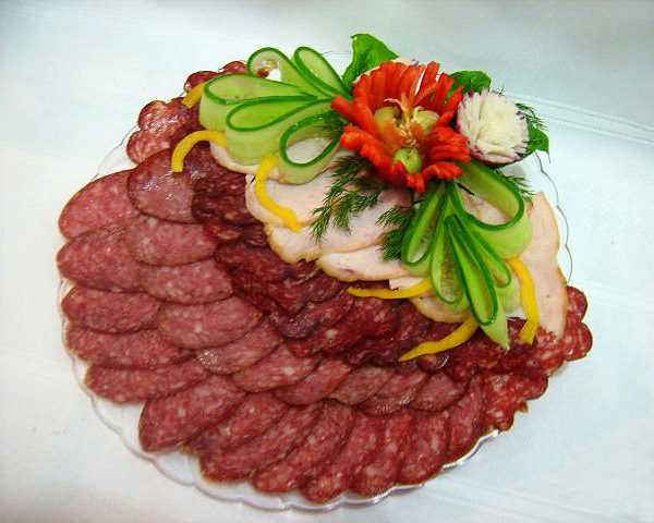 Мясная нарезка, как овощная нарезка (овощная тарелка), или рыбное ассорти (рыбная тарелка) – это отражение вашего неповторимого вкуса и индивидуальности. Берем на заметку примеры способов красивого оформления мясного ассорти и, комбинируя их по своему вкусу и добавляя полет своей необузданной творческой фантазии, делаем свою неповторимую мясную нарезку для праздника!