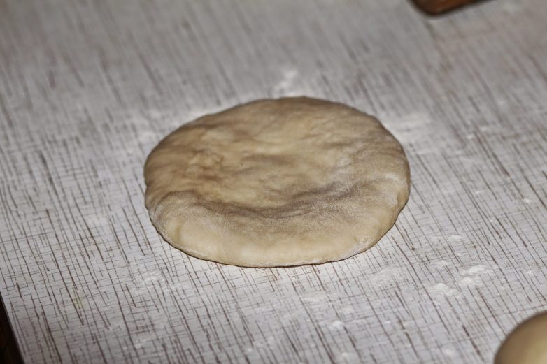 Переворачиваем шарик швом вниз и слегка расплющиваем.
