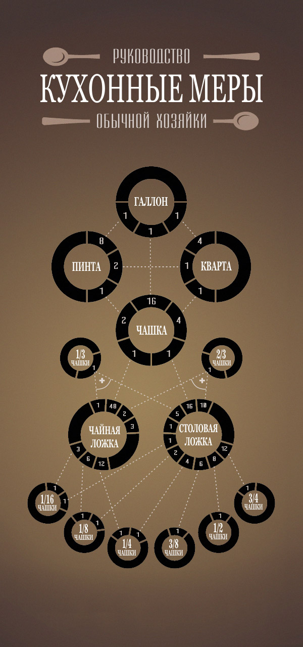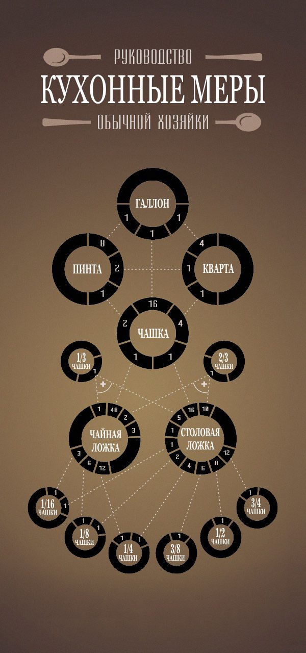 Инфографика по импортным кухонным мерам. Очень полезная вещь, особенно, если вы читая «не наши» рецепты, путаетесь в этих пинтах, квартах…
