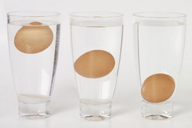 Если вы не уверены, что яйца в вашем холодильнике свежие, просто опустите их в стакан водой. Свежее яйцо тонет, старое — всплывает.
