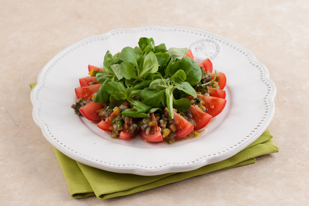 Предлагаем пошаговый рецепт сочного и яркого овощного салата с достаточно необычной заправкой из огурца, сладкого болгарского перца, маслин, лука шалот и анчоусов. Перчик чили добавляет блюду пикантности, а если вы хотите получить более острый вкус салата, измельчите и добавьте целый стручок чили перца.