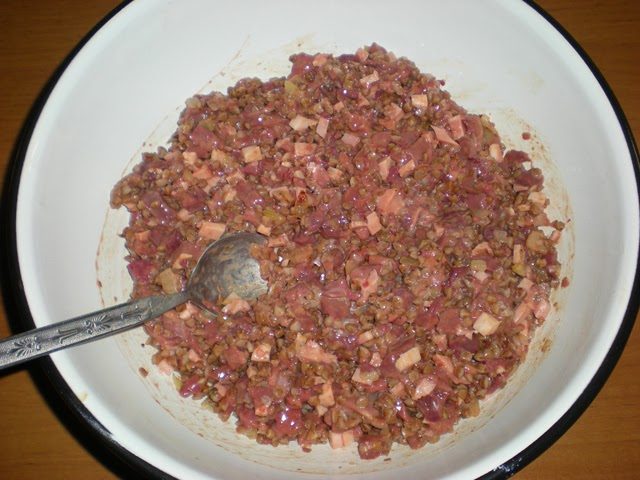 Печеночная колбаса с гречкой