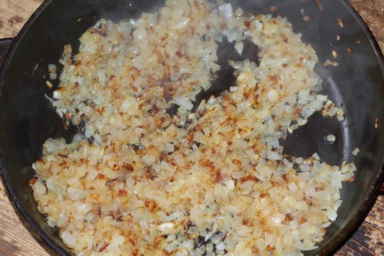 Лук обжарить до золотистого цвета.