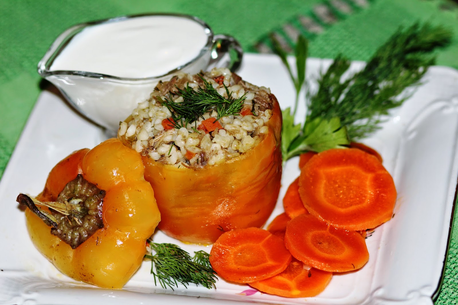 Перцы фаршированные булгуром и отварным мясом
