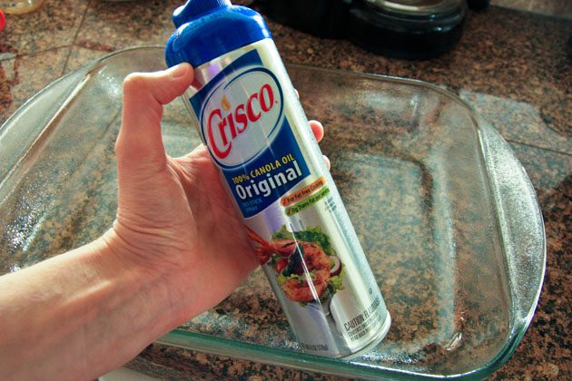 Смазываем стеклянную форму маслом(или cбрызгиваем специальным антипригарным аэрозолем).