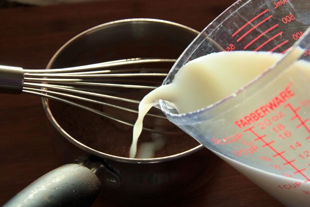 Ставим кастрюльку на средний огонь и, постоянно помешивая, доводим до кипения. Смесь должна быть идеально однородной, поэтому не прекращайте помешивать ни на секунду.