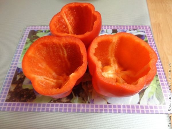 Убрала из перцев семена и ненужные перегородки.