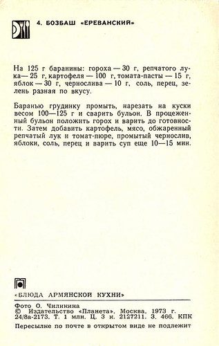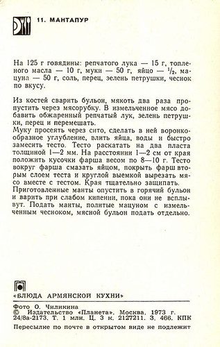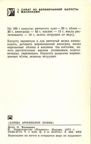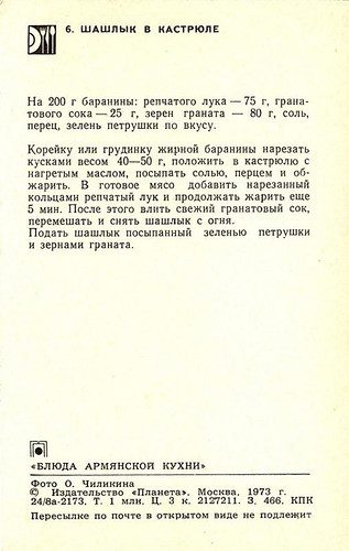 Набор открыток «Блюда армянской кухни» из серии «Блюда национальной кухни». Издательство «Планета». Москва, 1973.