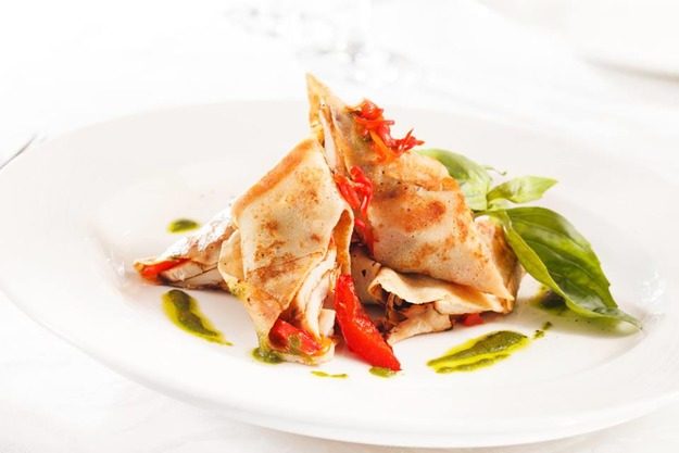 Начинка с привкусом салата «Капрезе» станет легким вариантом блинчиков для гурманов.