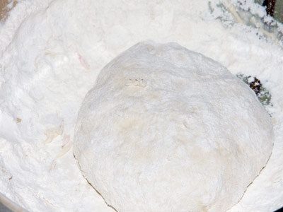 Скатываем тесто в шар, кладем обратно в миску, накрываем кухонным полотенцем и даем постоять в таком виде 10 – 15 минут. После смотрим, если тесто «поплыло» тогда добавляем к нему еще немного муки, повторно замешиваем, настаиваем и снова смотрим его плотность. Когда тесто примет нужную текстуру станет тугим, плотным и в тоже время будет легко подаваться лепки, приступаем к следующему шагу.