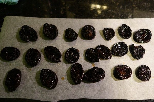 Тем временем достаем замоченный чернослив и обсушиваем его.