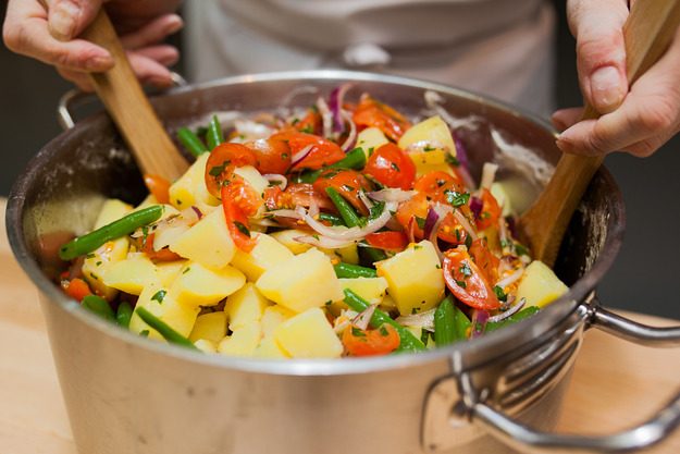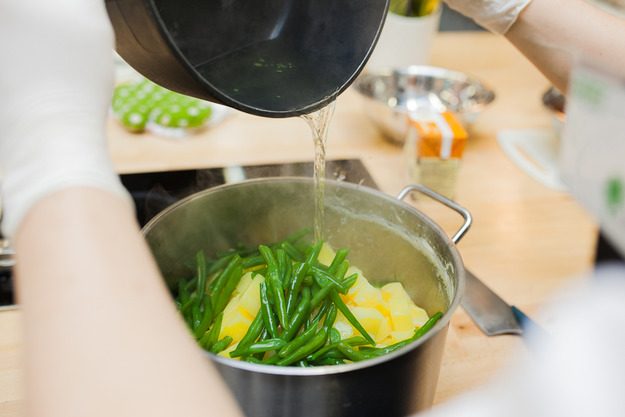 Картофель и фасоль прогреть.