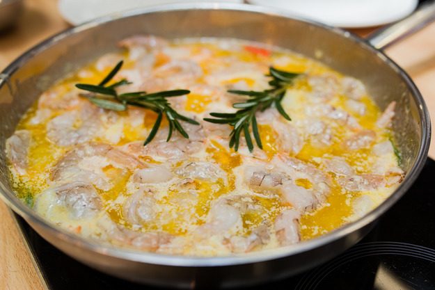 и добавить креветок, после чего готовить еще 3–5 минут, пока креветки не порозовеют.