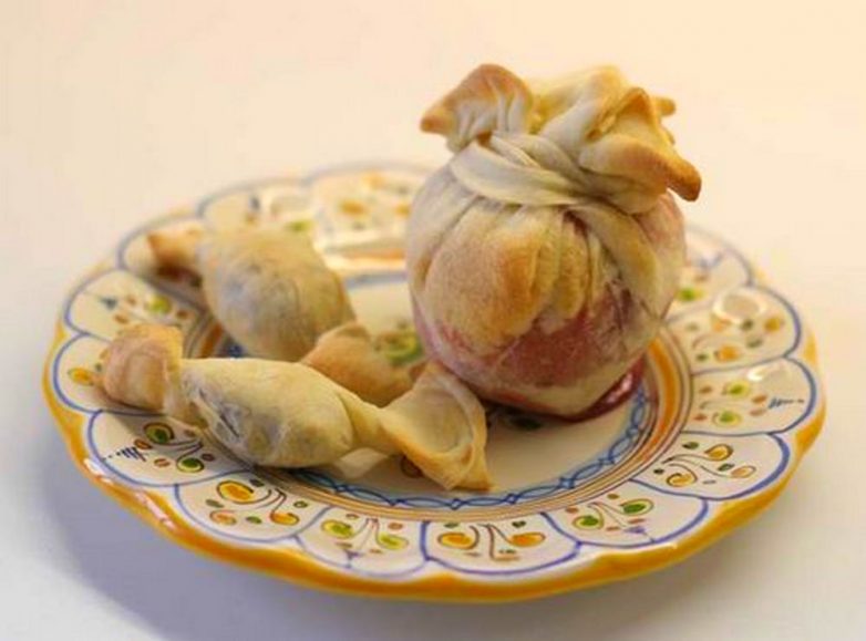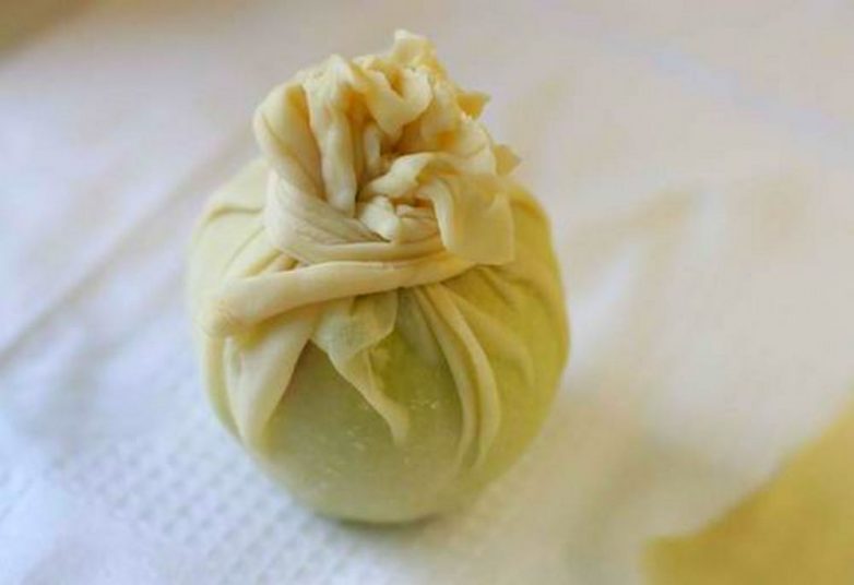 Завязываем мешочек полосочкой теста.