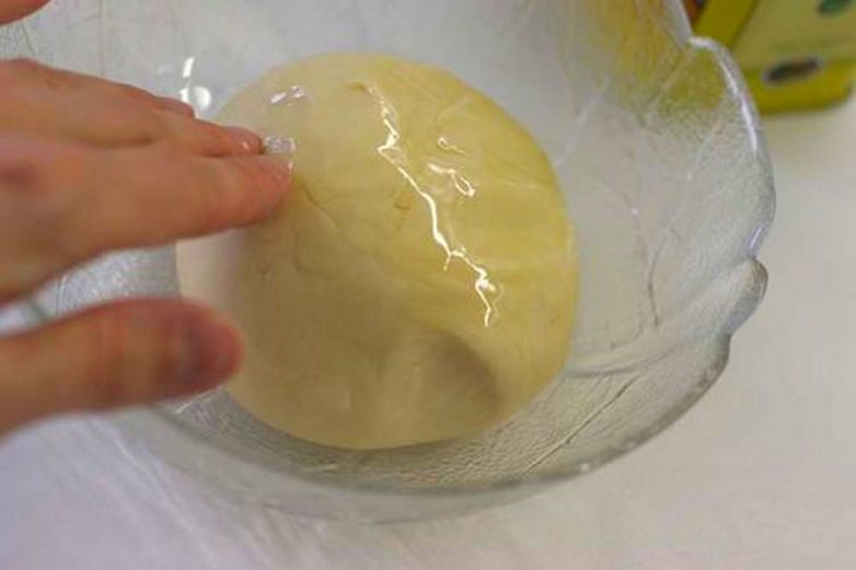 Когда оно перестанет прилипать к рукам, выкладываем на стол и месим хорошенько еще минут 8-10. Потом кладем в теплую миску, смазываем растительным маслом и накрываем горячей миской (можно нагреть в СВЧ). Оставляем на час. Все тепло, и теплая вода, и посуда, нужны для того, чтобы клейковина хорошенько соединилась с водой. Главное в этом тесте — эластичность.