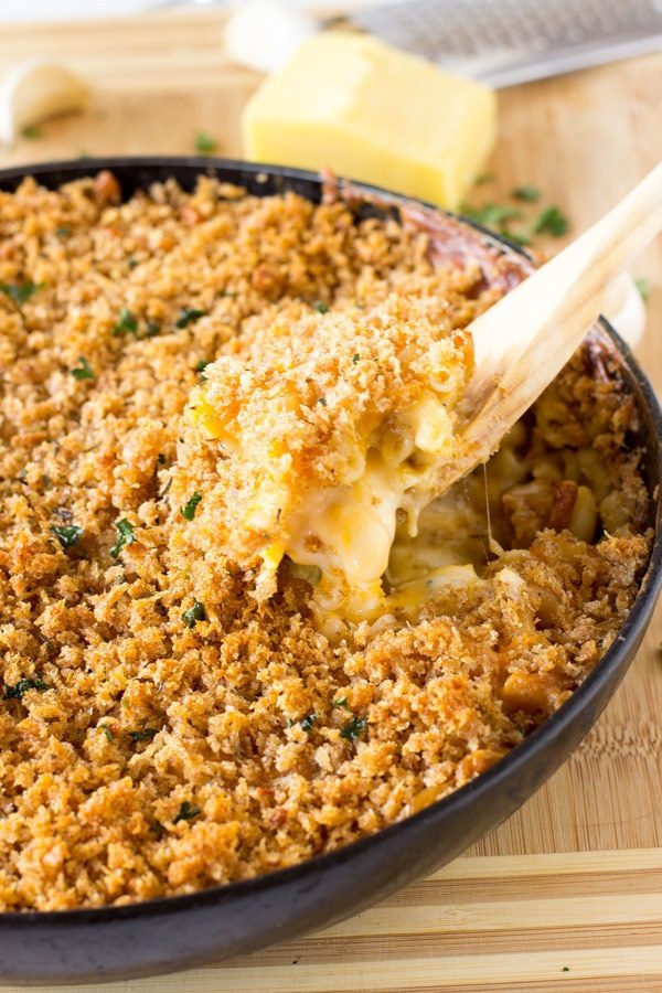 10. Макароны, приготовленные с тремя разными видами сыра, — вкуснейшее лакомство. Но если добавить в него еще и сухари, произойдет невозможное и блюдо станет еще лучше!