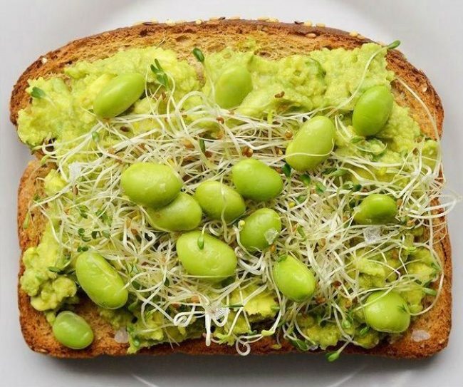 Пюре из авокадо, соевые бобы, капуста, лимонный сок.