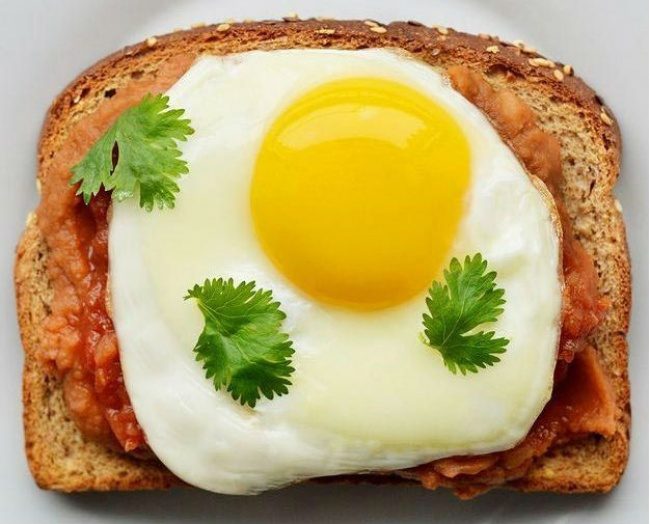 Фасолевое пюре, соус сальса, кориандр, яичница.